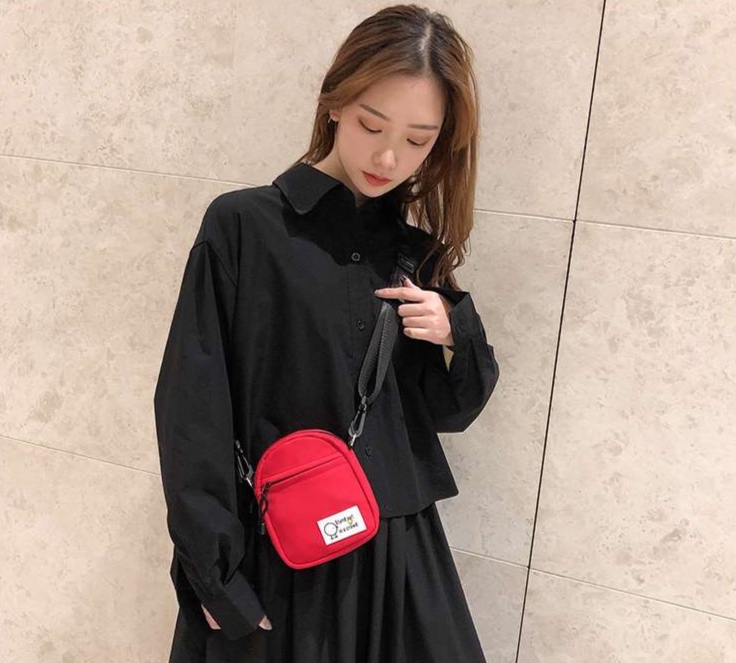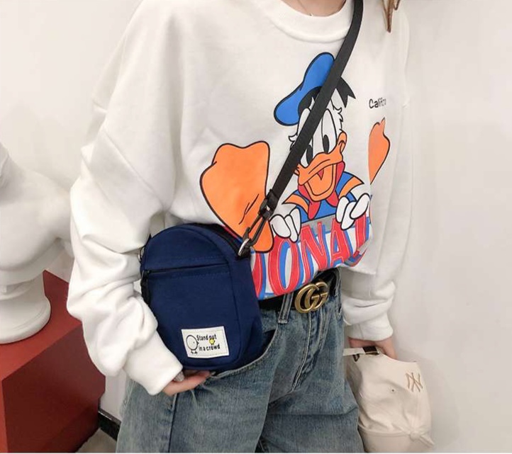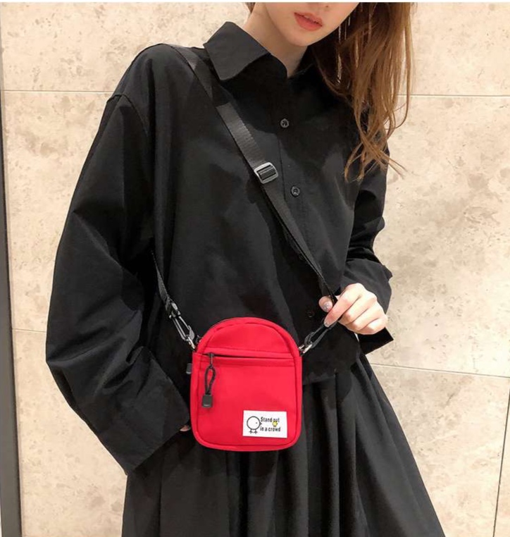 コンパクトながら存在感抜群のポシェット。「群衆の中で目立つ」というユニークなメッセージ入り。