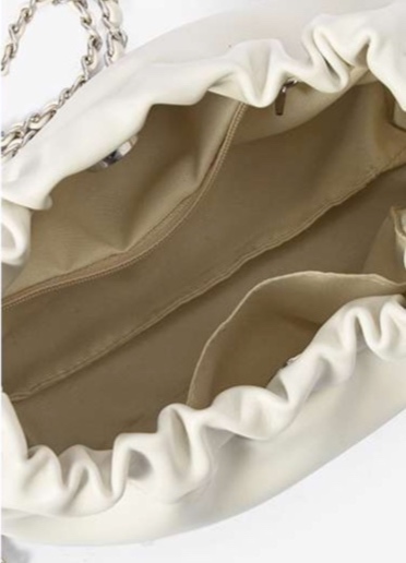 ふんわりとしたシルエットが魅力のきれいめポシェット。軽やかな素材とやさしく膨らむフォルムが女性らしさを際立たせる。繊細なチェーンストラップが上品さを添え、日常使いから特別なお出かけまで幅広く活躍。口元のギャザーデザインが柔らかな印象を与え、コーディネートに華やかさをプラスする。洗練されたデザインで、どんなスタイルにもマッチする一品。