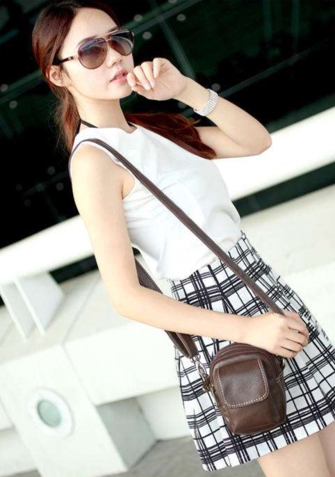 チェック柄のスカートと合わせることで、レトロな魅力と今どきのファッションセンスを両立させています。