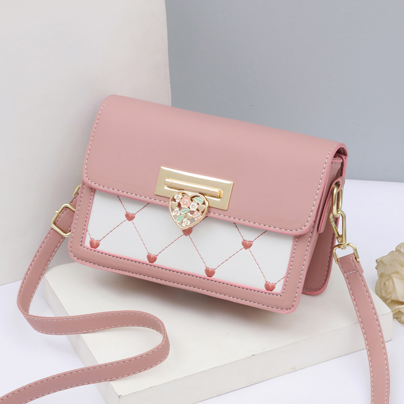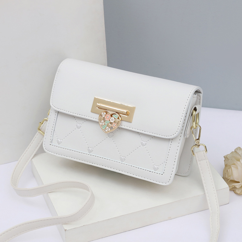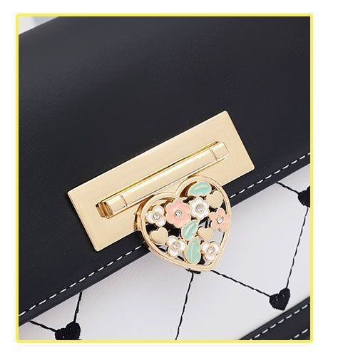 キュートなハート型の装飾金具が目を引く大きめポシェットです。