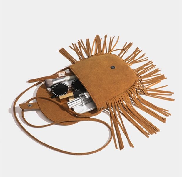存在感のあるフリンジが魅力的なレディースポシェットです。