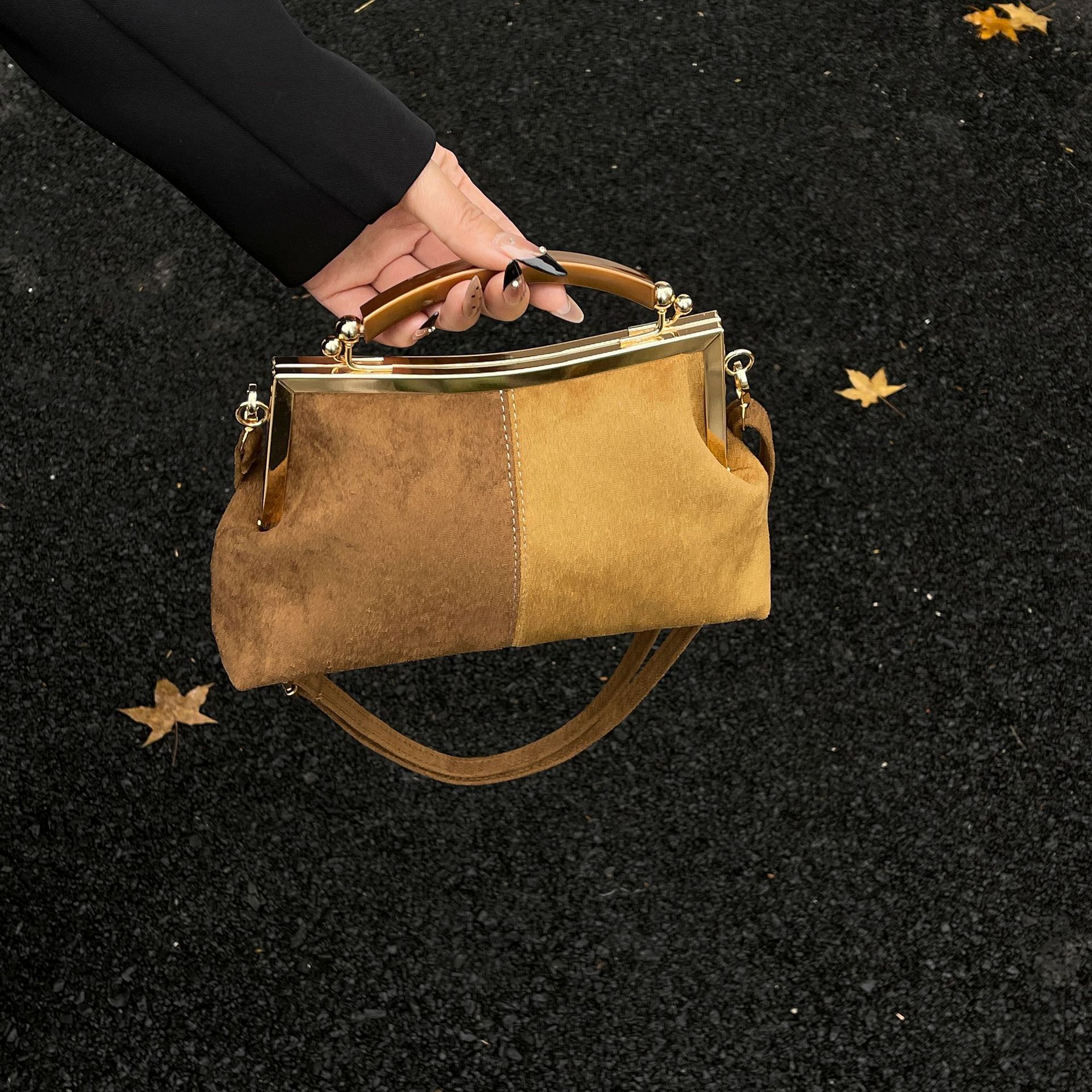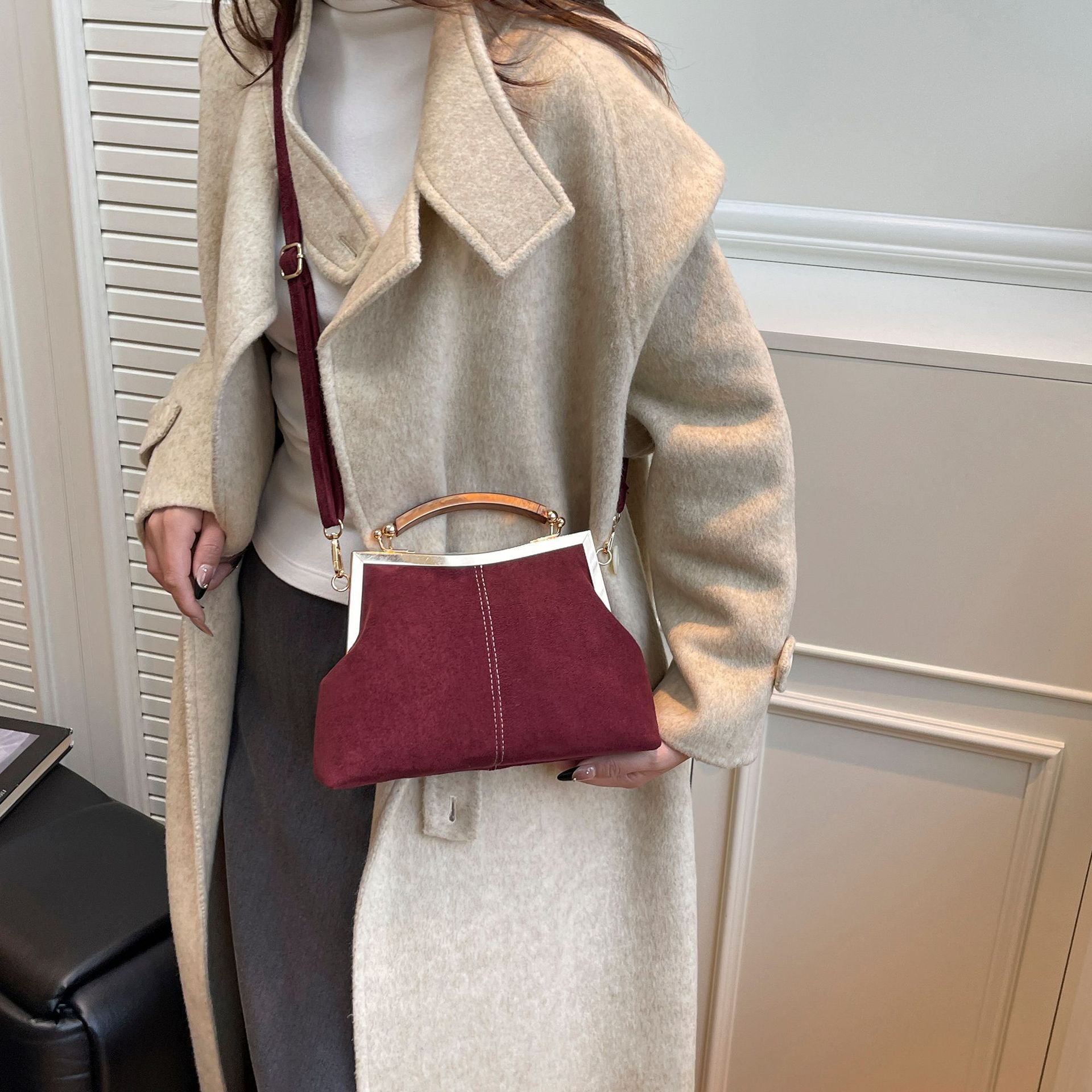 上質なスエード調素材を使用し、秋冬のコーディネートに温かみをプラスします。