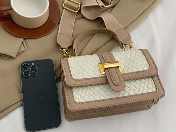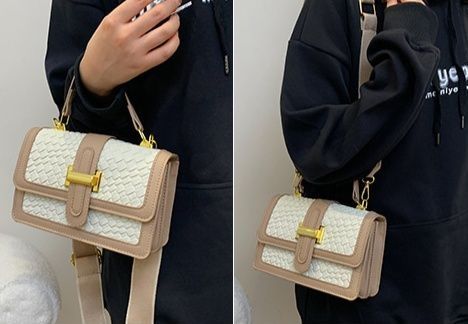 上品な編み込みデザインが魅力的なレディースポシェットです。