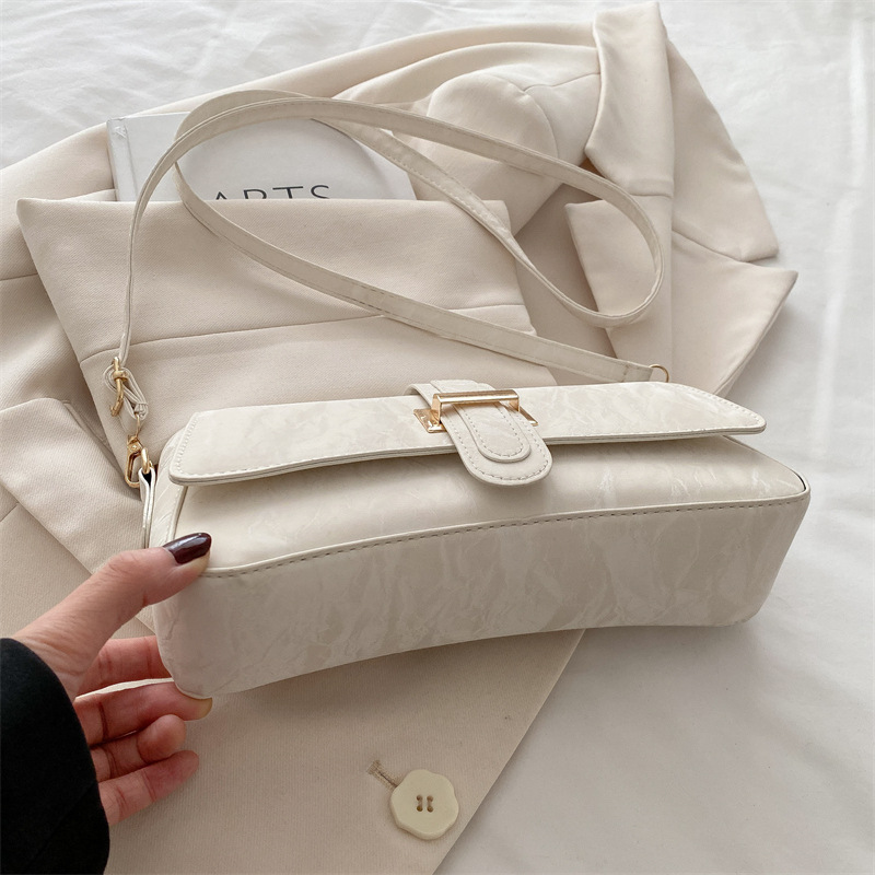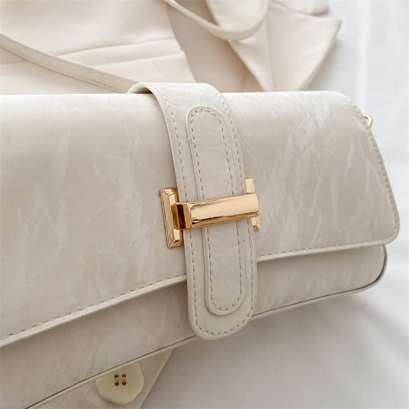 フロントのベルトデザインと金具がアクセントになり、シンプルながらも洗練された印象を与えます。
